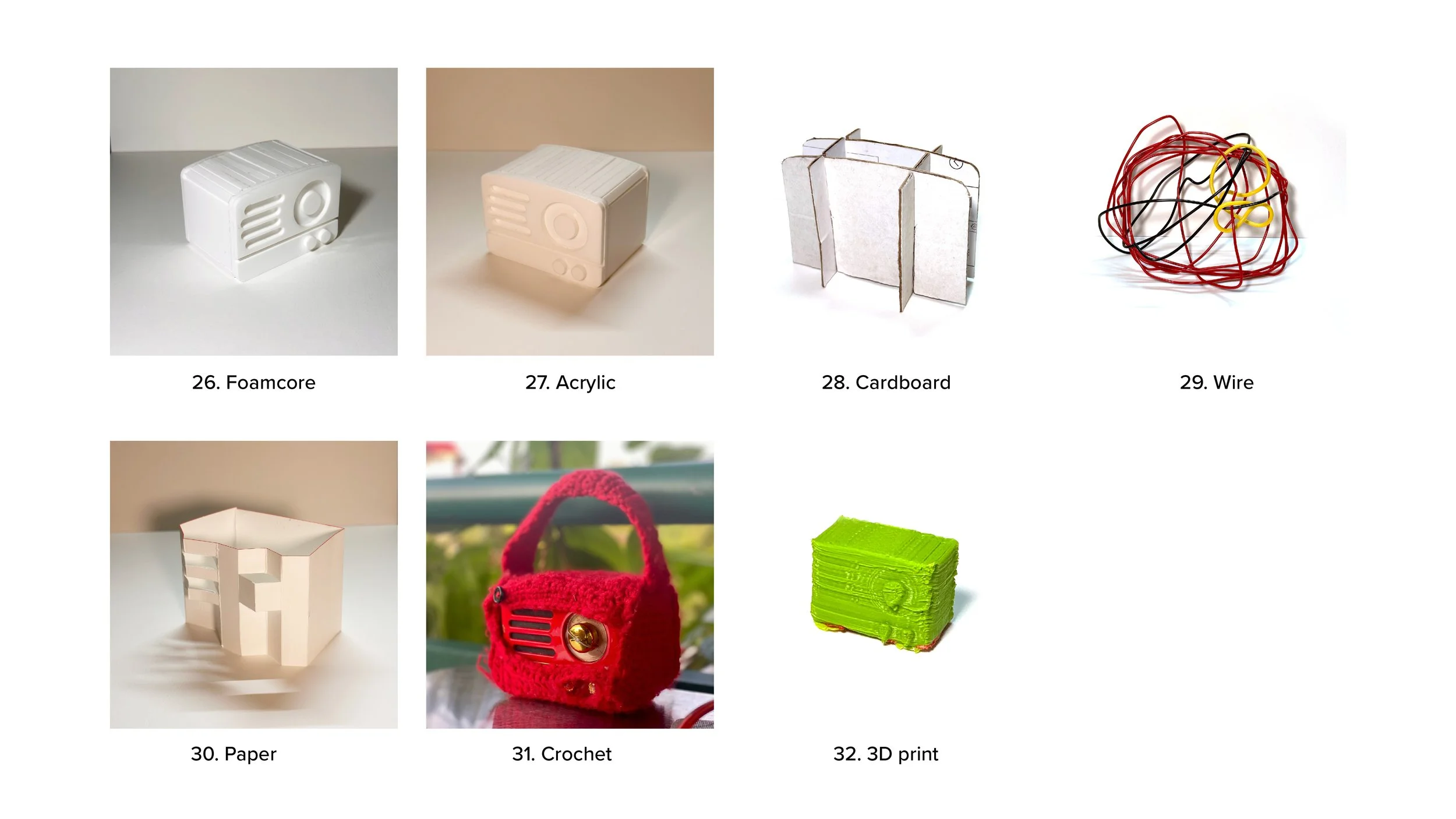 I crafted several 3D models using foamcore, cardboard, and paper, each highlighting the speaker’s structure from distinct perspectives. Additionally, as a craft enthusiast, I crocheted a bag for the speaker. Furthermore, I have plans to incorporate needle felting, embroidery, or beading techniques to further enhance its design.