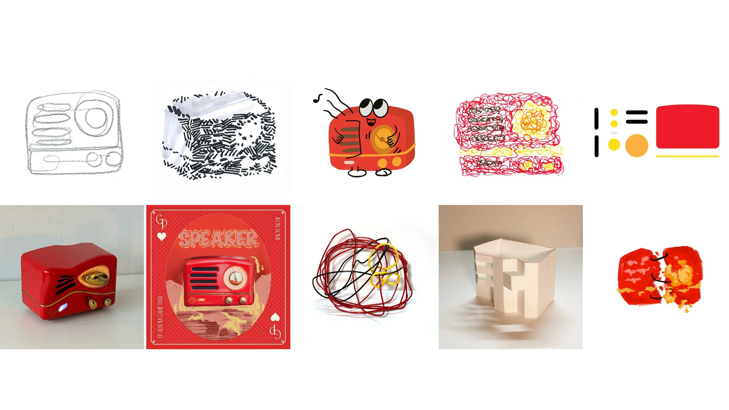 In this project, I explored many materials, techniques, and styles, ranging from physical art to digital design and craft. Around the 33rd idea, I hit a creative block, unsure how to keep reimagining the speaker. Mind mapping helped me break through, inspiring new directions by linking the speaker to different occasions and music genres.