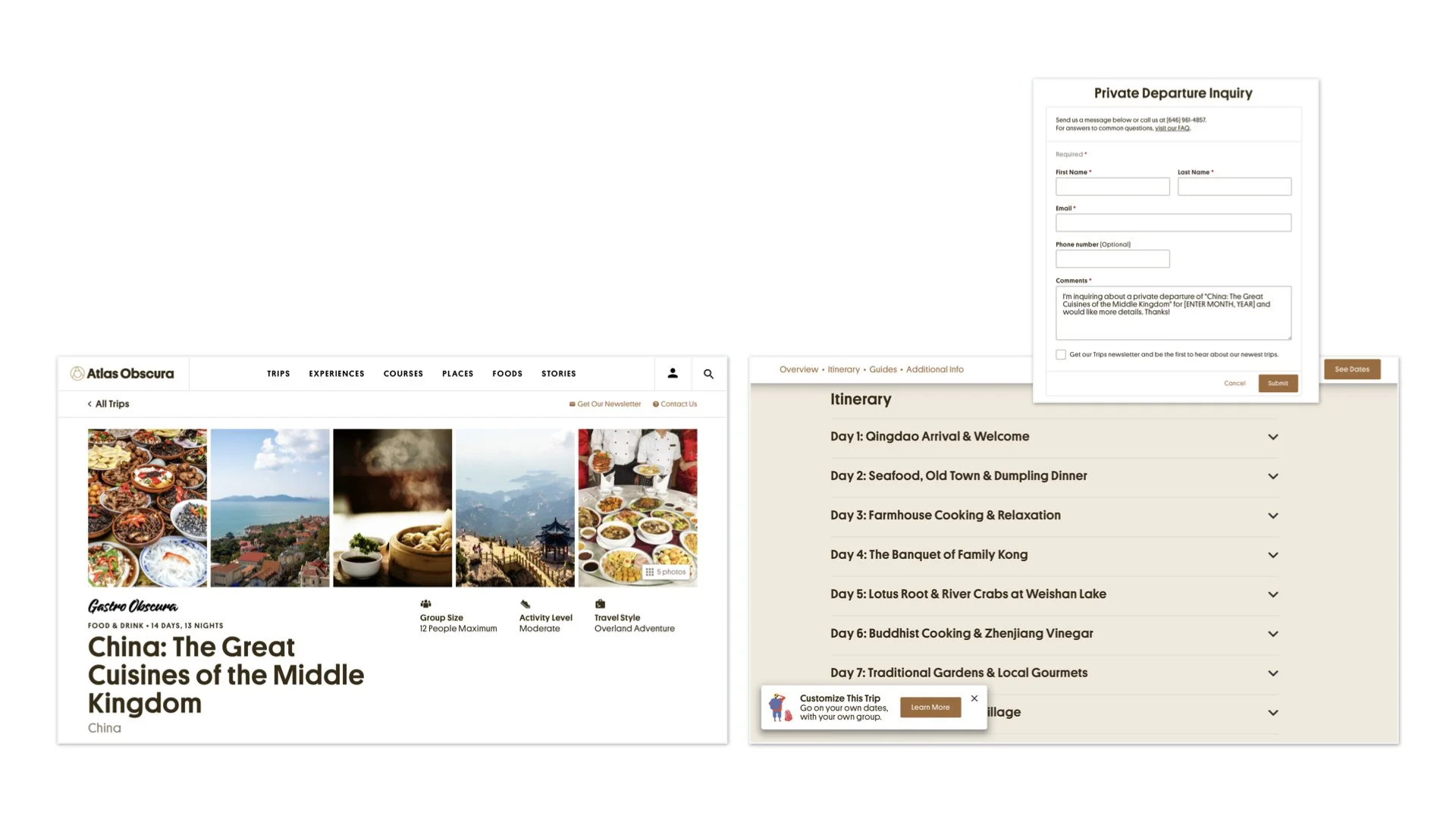 Atlas Obscura offers ideas for a different kind of atlas, featuring places not commonly found in guidebooks. They offer trips, but still with the designed itinerary.